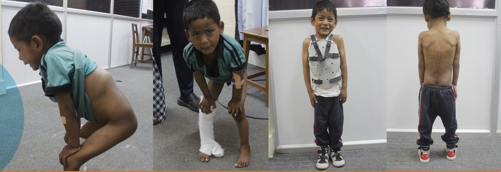 Fortunately, he was seen at FOD’s mobile clinic to rural far-western Nepal. FOD’s spine team carried out a major surgery to his spine that involved removing the infection from his back and “instrumenting” his spine with screws and rods, followed by anti-tubercular chemotherapy. Now eight year old Sudip can walk normally to school with a lively smile on his face. His condition, which would have been amenable to treatment with medications alone if diagnosed early on, reflects the many barriers that preclude early intervention in socioeconomically constrained environments.